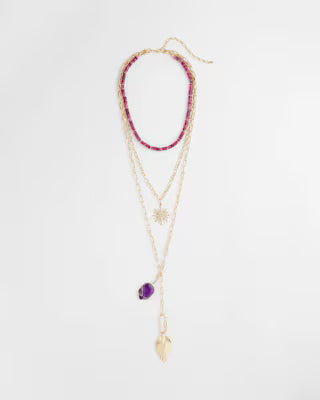 The perfect necklace for travel—this striking Convertible Multi-Layer Necklace can be worn a variety of ways. Made with genuine amethyst stone and a blend of rich metals for a truly feel-good style.