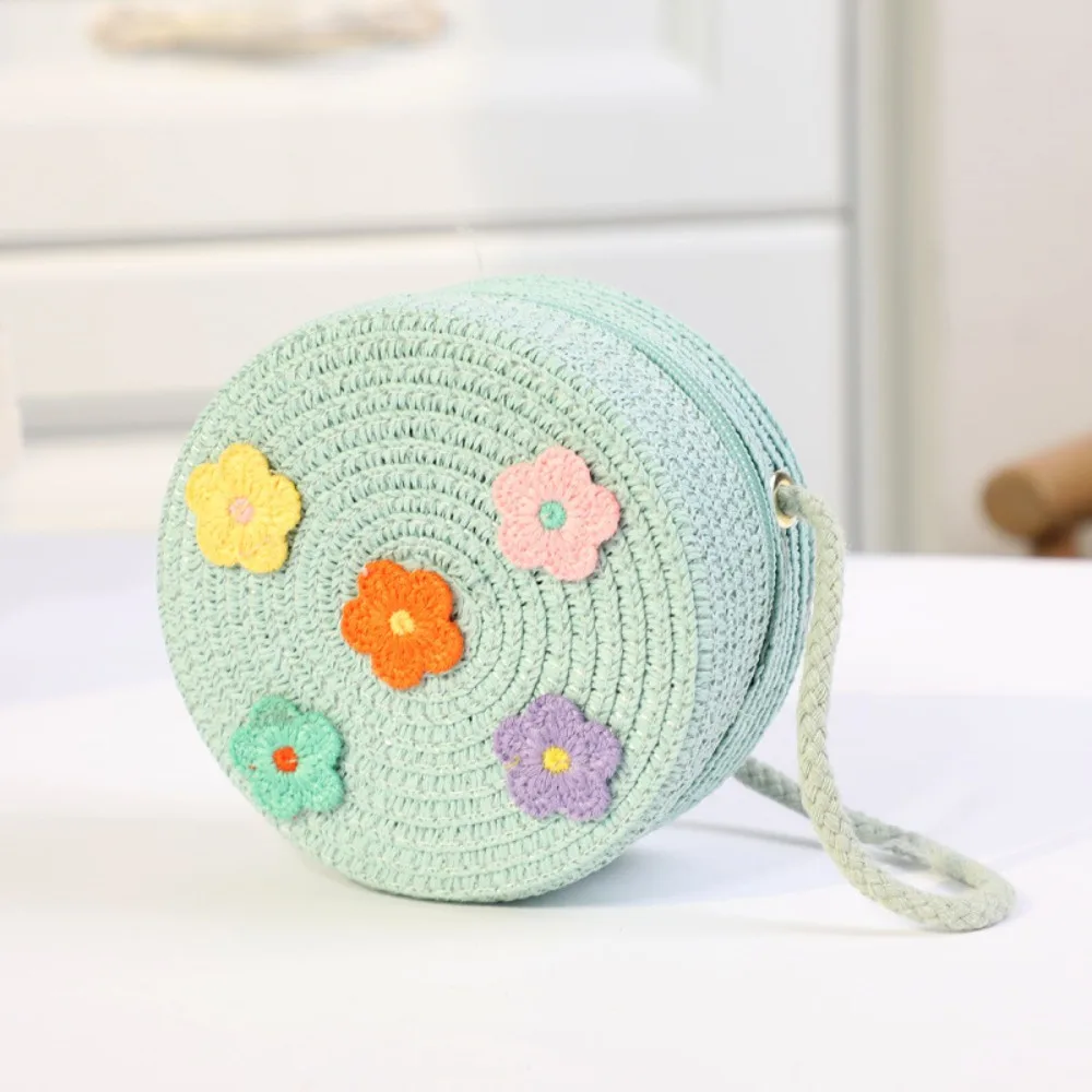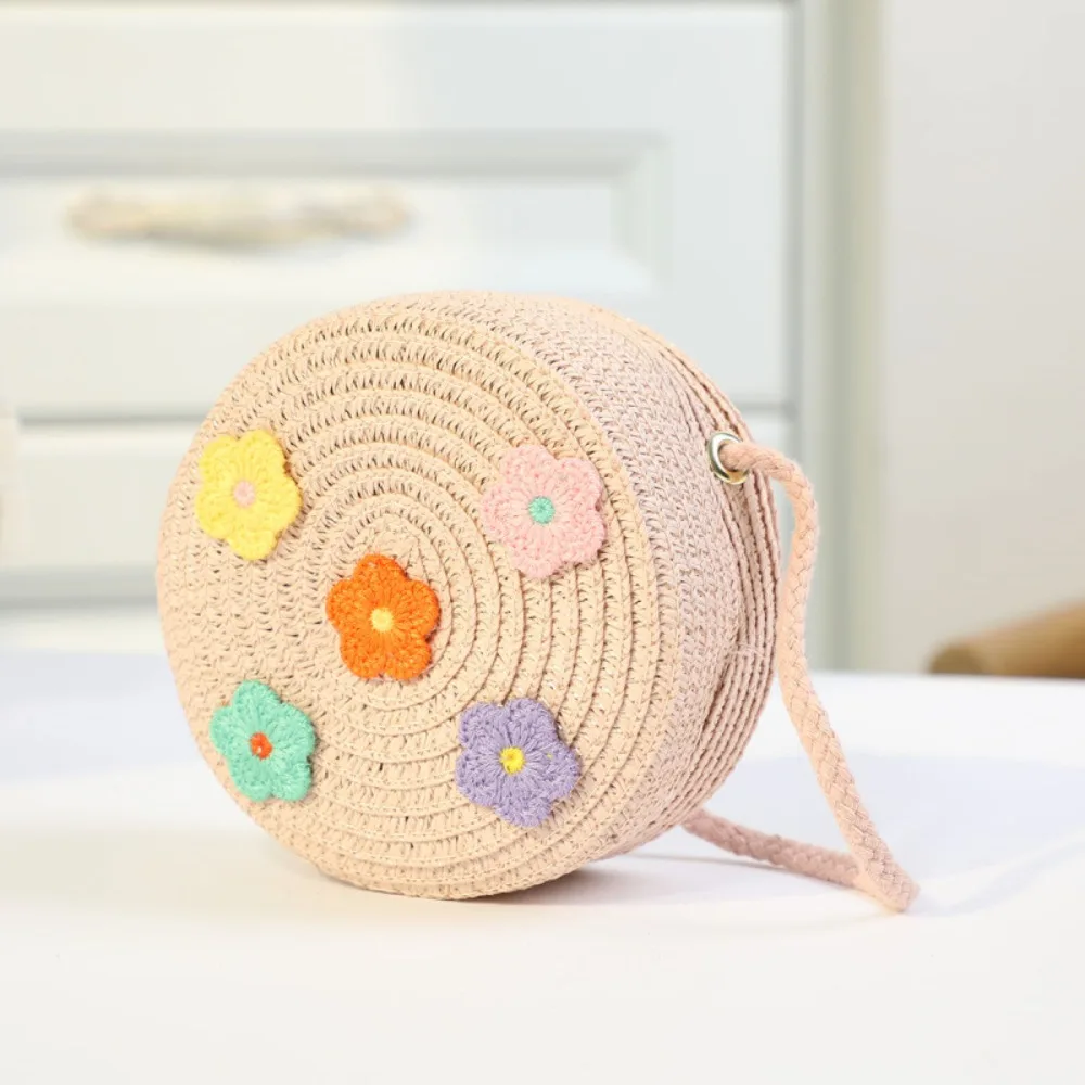 Children Straw Beach Bag Cute Heart Pattern Shoulder Bag Straw Crossbody Bag Handbag Baby Coin Purse Casual Messenger Bag