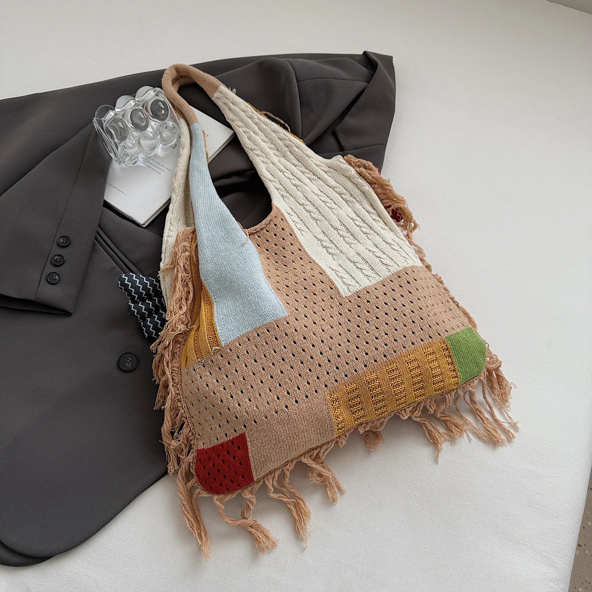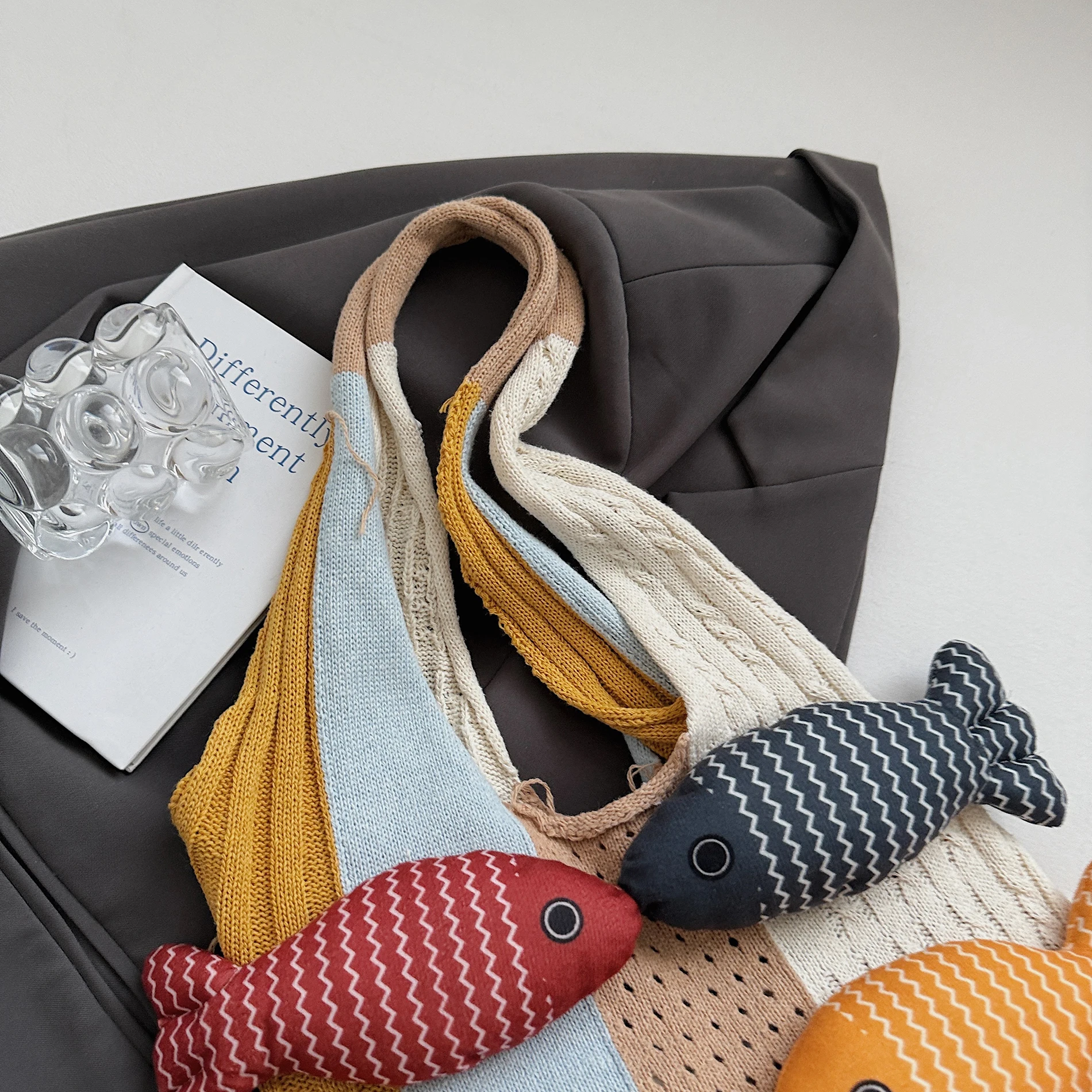 Cute Little Fish Relaxed Knitted Bag 2025 Summer New Commuter Versatile Shoulder Bag Contrasting Cut Out Tote Bag