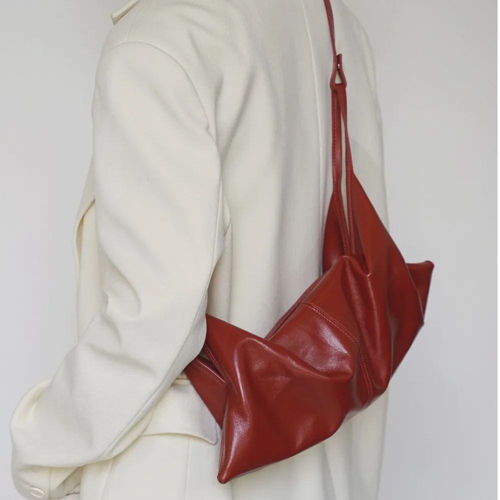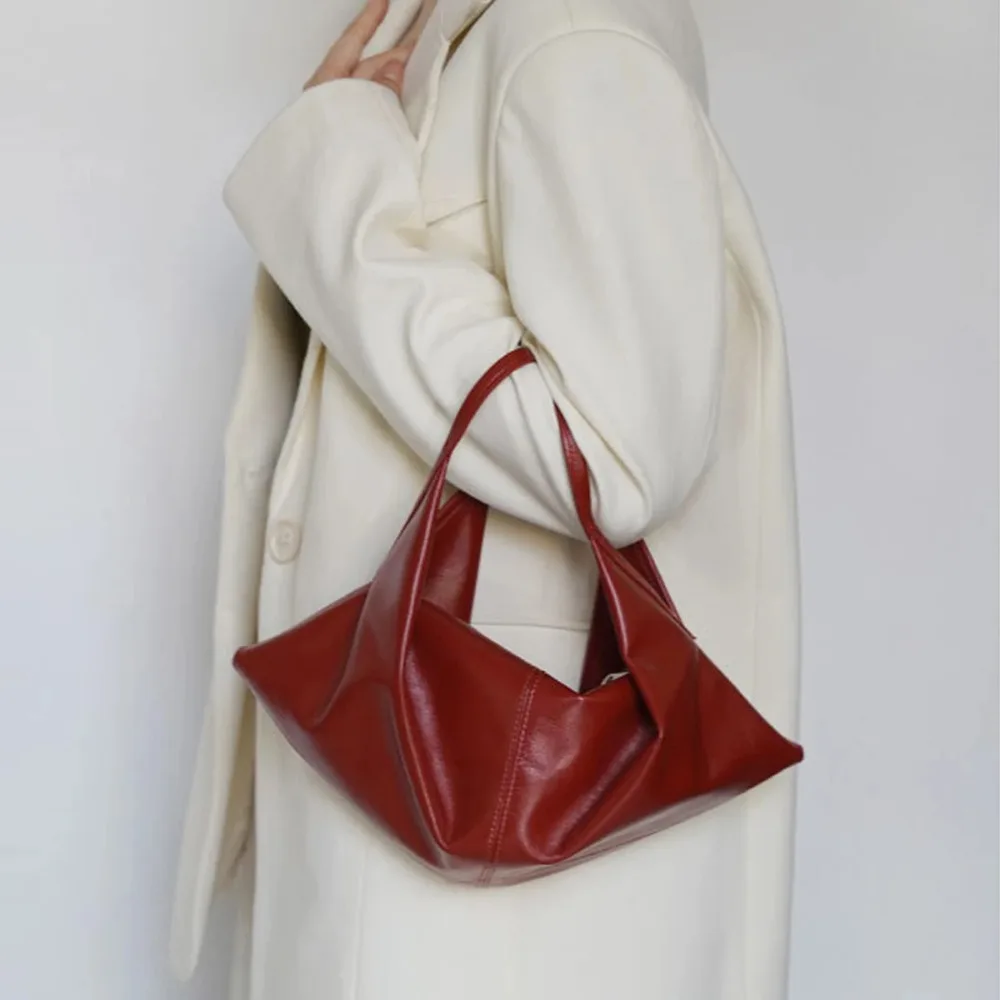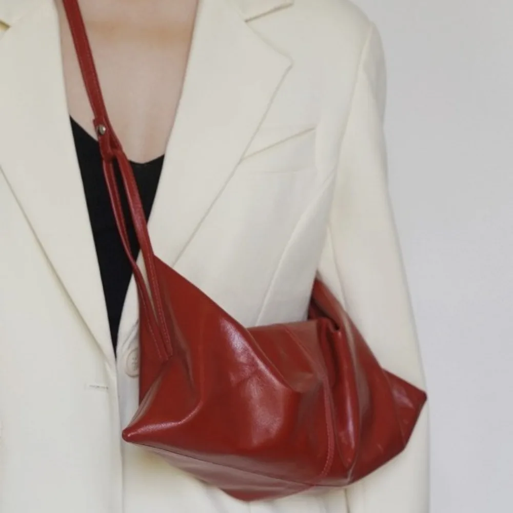 Soft Leather Croissant Crossbody Bag Commuting Vintage Lazy Style Shoulder Bag Korean Style Hobos Oil Wax Leather Handbag Travel